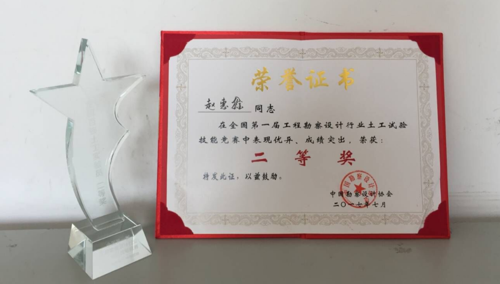 2017年7月25日至7月27日,全国第一届工程勘察设计行业土工试验技能竞赛在云南昆明举办,我公司赵惠鑫代表河北省工程勘察设计咨询协会参赛,获得个人二等奖。
